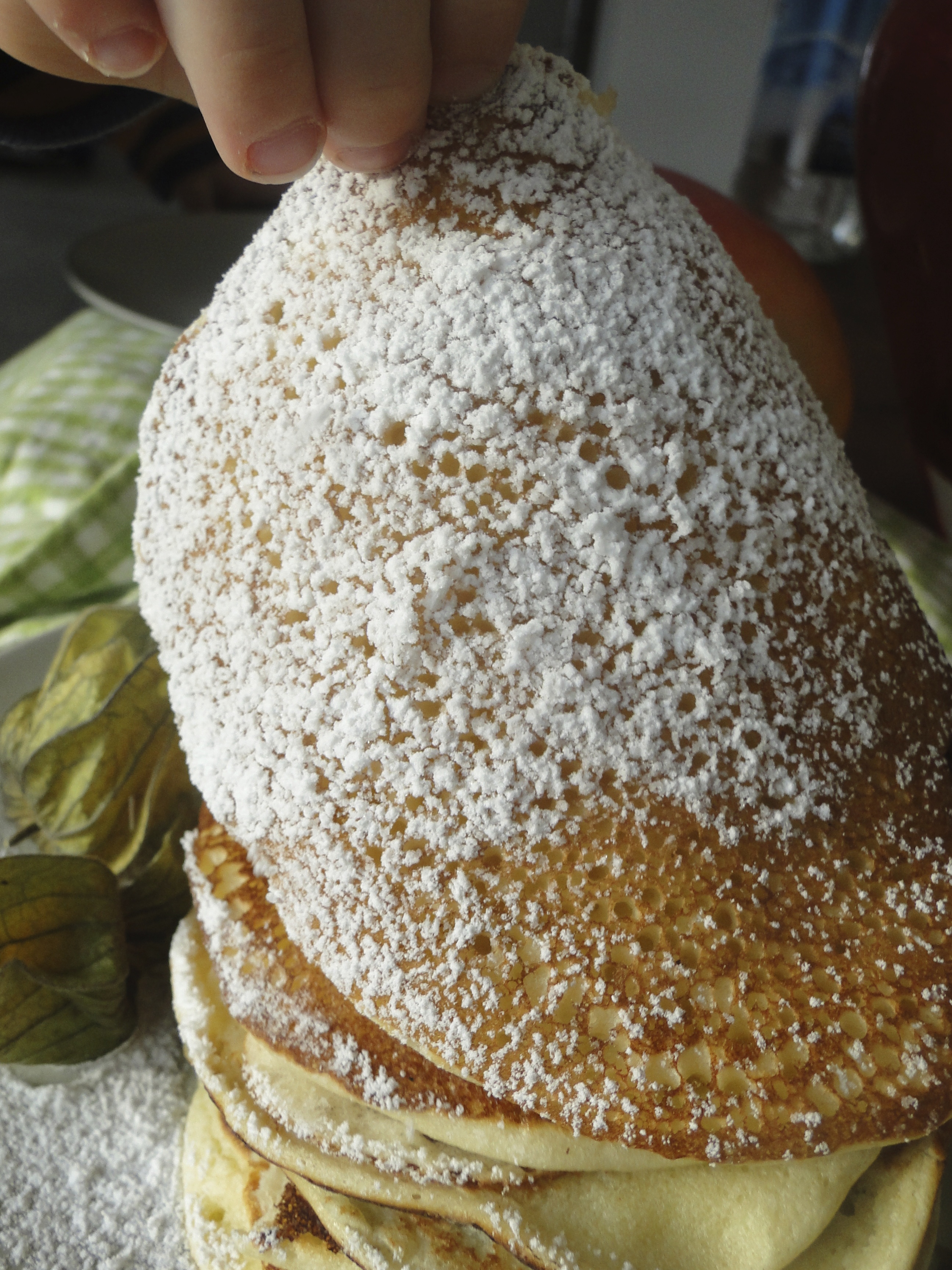 PS: Zur Wochenend-Pfannkuchenstimmung gehört unbedingt die richtige Musik, abhängig von Laune, Wetter und Hintergrundgeräuschen (Kindern) zum Beispiel alles von Madeleine Peyroux, Sade, Wilco, oder warum nicht Ella (F.) und Louis (A.) ?