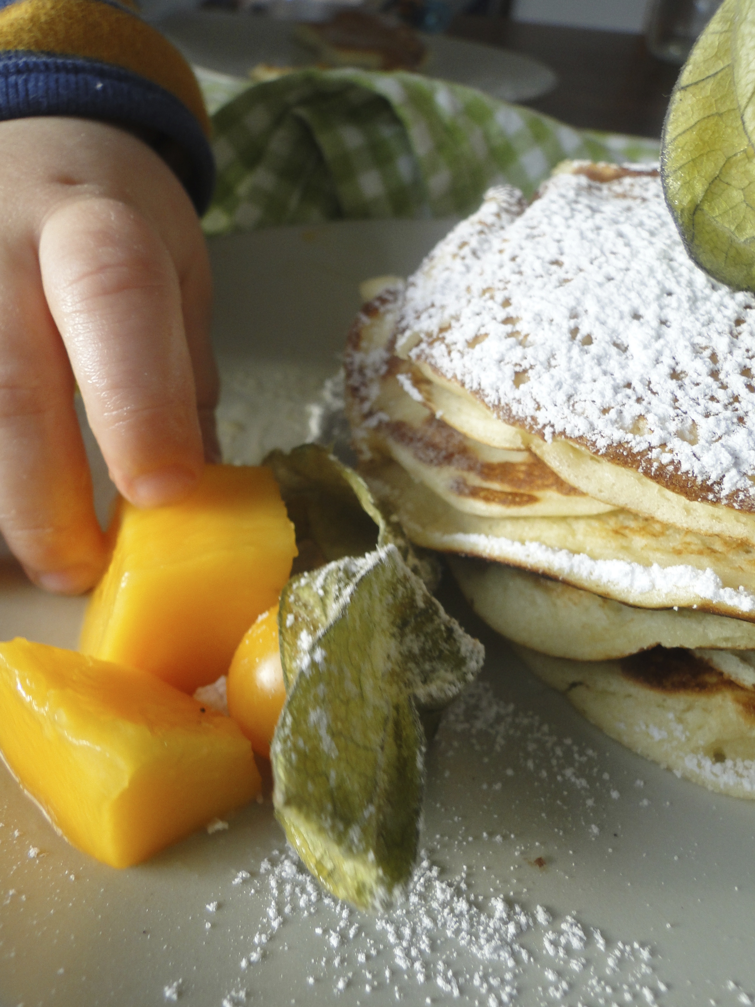 Speaking of rituals: One of my last Kaiserschmarrns was a little too brown, which was clearly visible even underneath the layer of confectioners´sugar that it is powdered with upon serving. My son noticed that instantly, so now every time I make him pancakes or Kaiserschmarrn or whatever Pfannkuchen, he will say: “Mummy burns” (He´s 2). So it seems I´ve involuntarily added a little something special to our family ritual: Papa´s home for breakfast, Mama burns the pancakes.