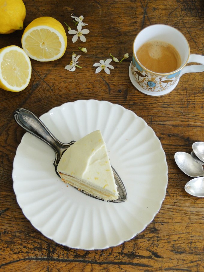 And talking franglais,  on mange du “cake”. Un cake can be sweet or savory, the point is that it´s a simple batter, a pound cake perhaps, usually baked in a rectangular tin. Here, the basic cake recipe I make almost every week gets an upgrade, ending up being nothing but lemony. Drizzled with lemon syrup, filled with lemon curd, covered in lemon whipped cream. I wish I had a word in franglais to describe it, but in French I´d say it´s délicieux.